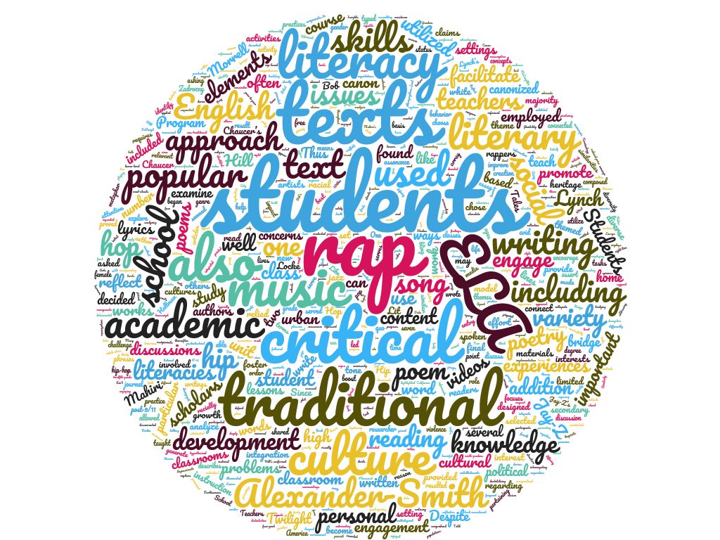 As a part of my dissertation, I facilitated a two-hour workshop in a methods course for prospective English and Social Studies teachers. In the workshop, I addressed the use of popular music (e.g., lyrics, videos) to promote academic and critical literacies in English and Social Studies classrooms. My data set included participants’ reflections on the use of popular music for instructional purposes, lesson plans they wrote for the methods course, and interviews with three select participants.
