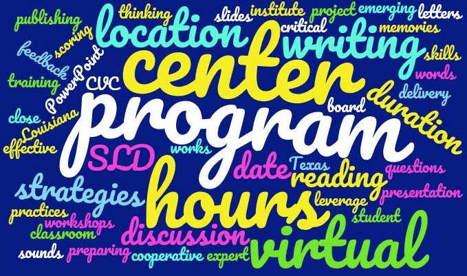 | “Strategies to Address SLDs in Writing” Location: Virtual Date: 5/31/2018 Duration: 1 hour | “Annotation as an Interactive Reading Strategy” Location: Virtual Date: 3/15/2018 Duration: 30 minutes |